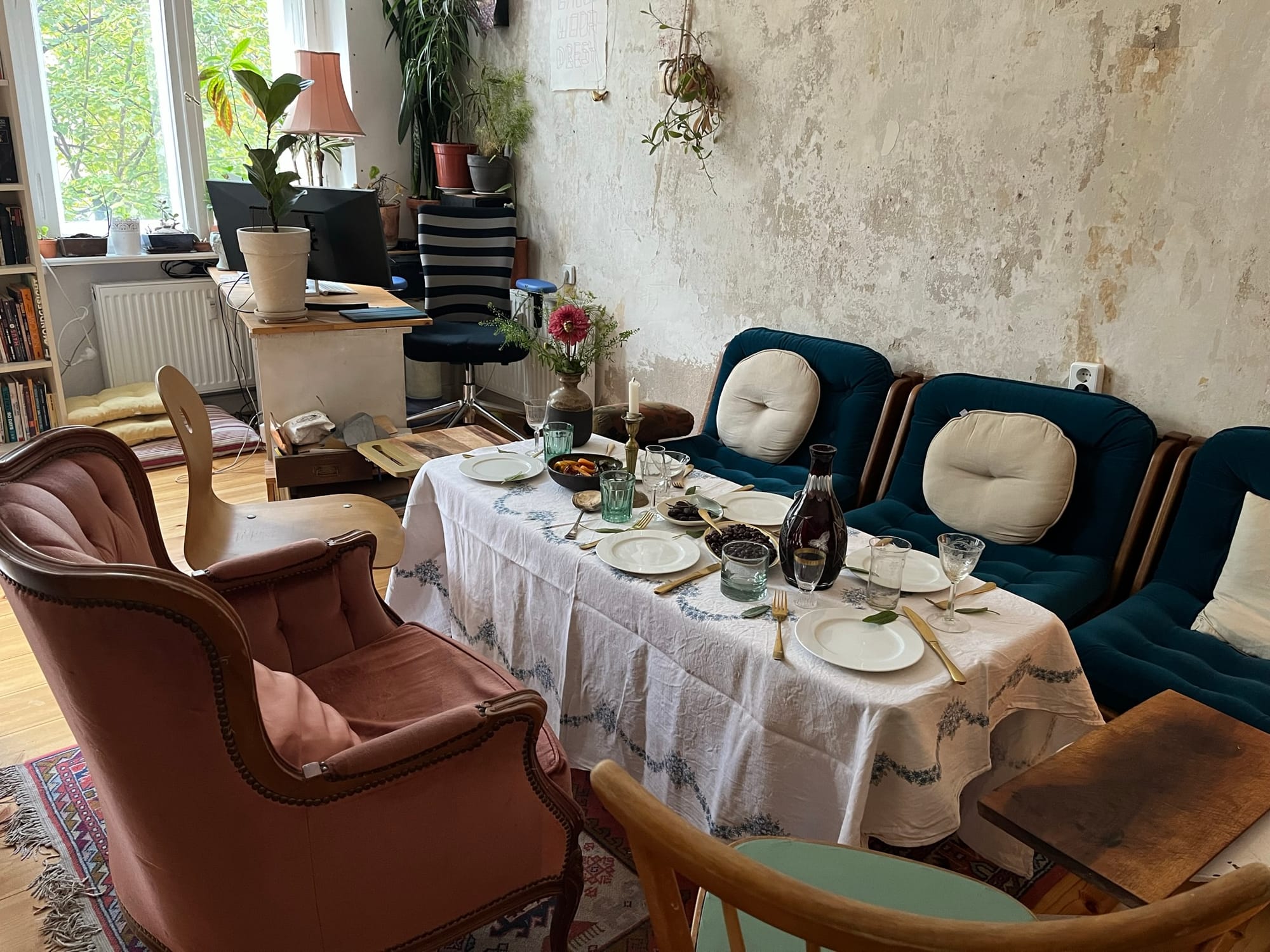 Our brunch friend’s apartment was classic Berlin: small, old, and intimate. It was brought to life by her exquisite interior decorating, which consisted of bits and bobbles from her life, fond photographs, and greenery on the balcony and tables.