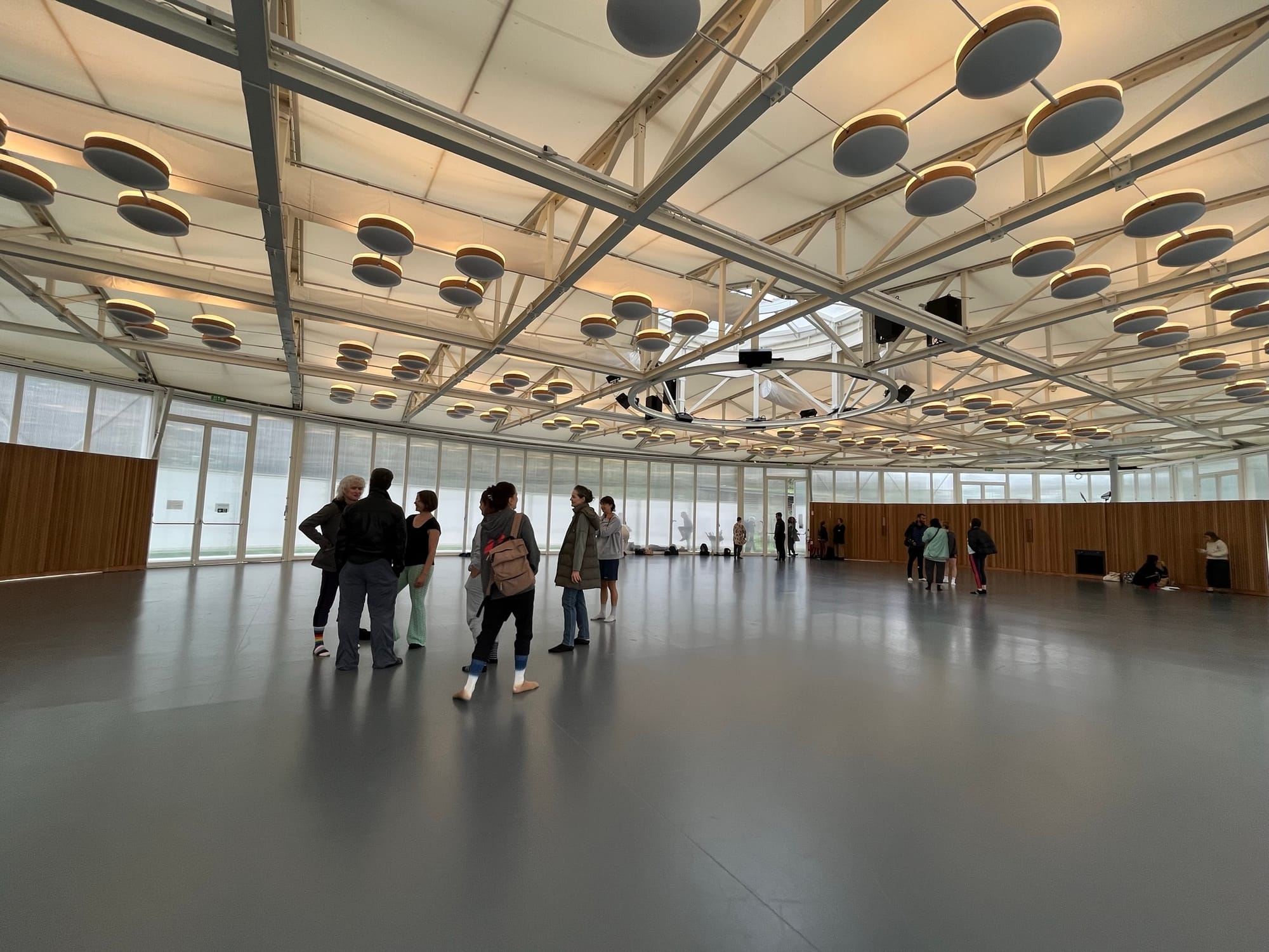 This in-studio performance was in place of a trip to Turin, Italy, to watch Batsheva’s Momo at the Turino Danza Festival. Due to ongoing political conflict with Israel, the trip was cancelled, and we got refunded for that portion. However, one of my new dance scholar friends said that this was much better than the Turin trip, seeing as we could watch the dancers close-up, practicing in an intimate setting.