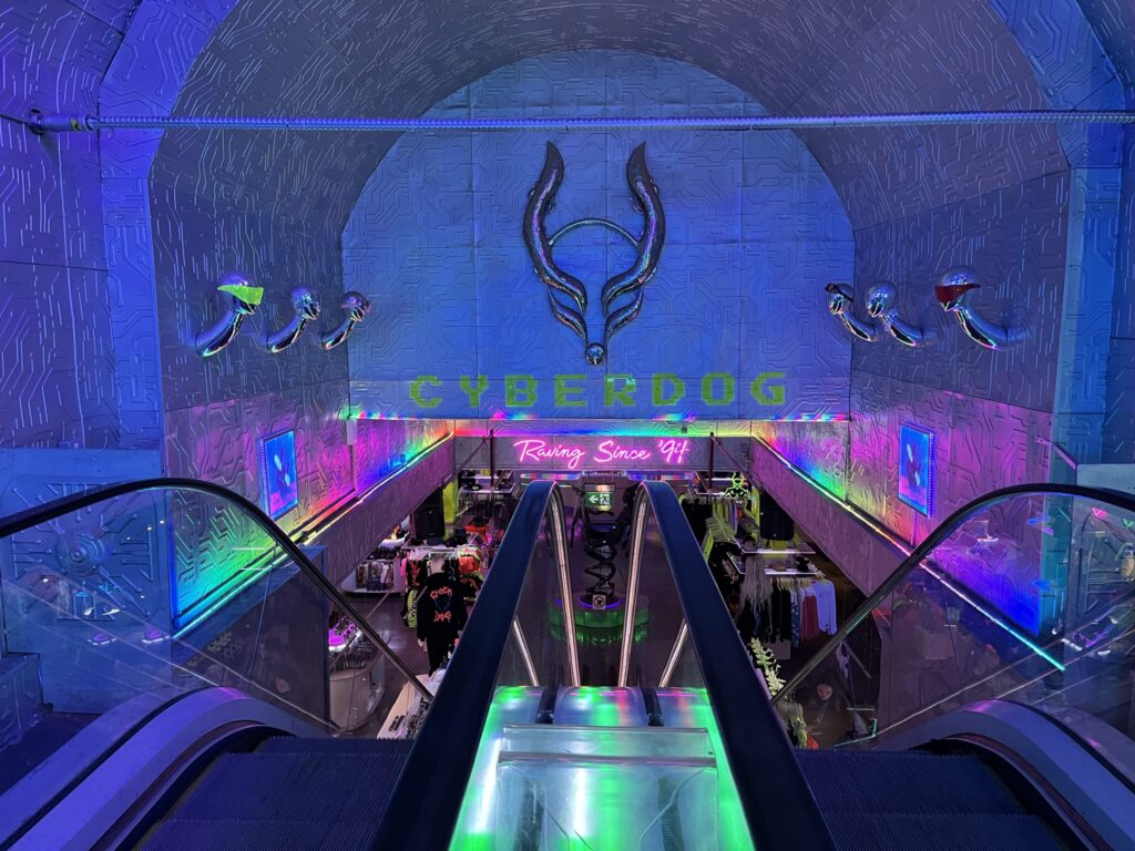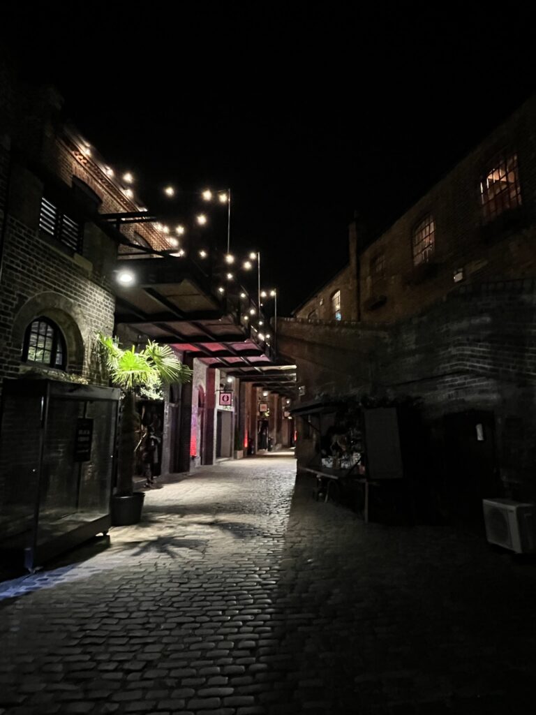 There are vintage (or so they say) stores, a buck market, cute dessert places, and a sprawling open-air food market with interesting pod tables that had me salivating at the glands. There are also several pubs and bars (including one, Coyote Ugly, with bar counter dancers, 18+) and a rave clothing store.