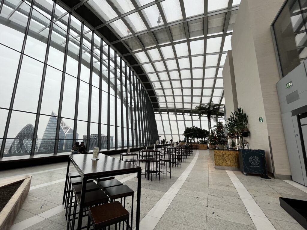 There is, however, a restaurant (no doubt pricey), and a large terrace for taking photos of the skyline — which, to be honest, didn’t impress me so much either. I think the London Eye at sunset offers a much more interesting angle of the city. I did appreciate the little notes they had on the open tables reminding us we can sit anywhere, no purchase required.