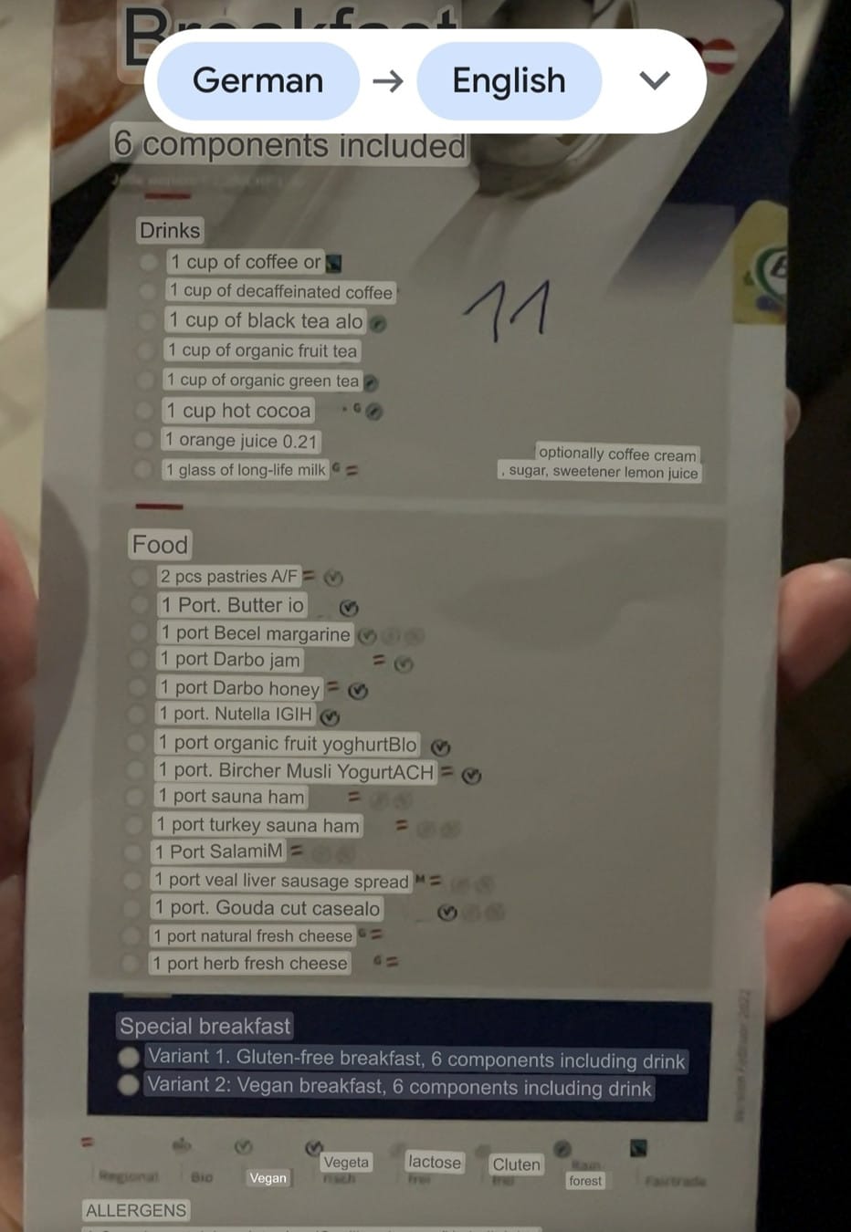 There’s also a flyer for breakfast (included in the sleeper car ticket) on the bed that you’re supposed to fill out right away and hand to the train attendant. I could barely see a thing in the pitch darkness, so I made the best I could out of Google Translate while also trying to keep my phone flashlight on and hoped for the best.