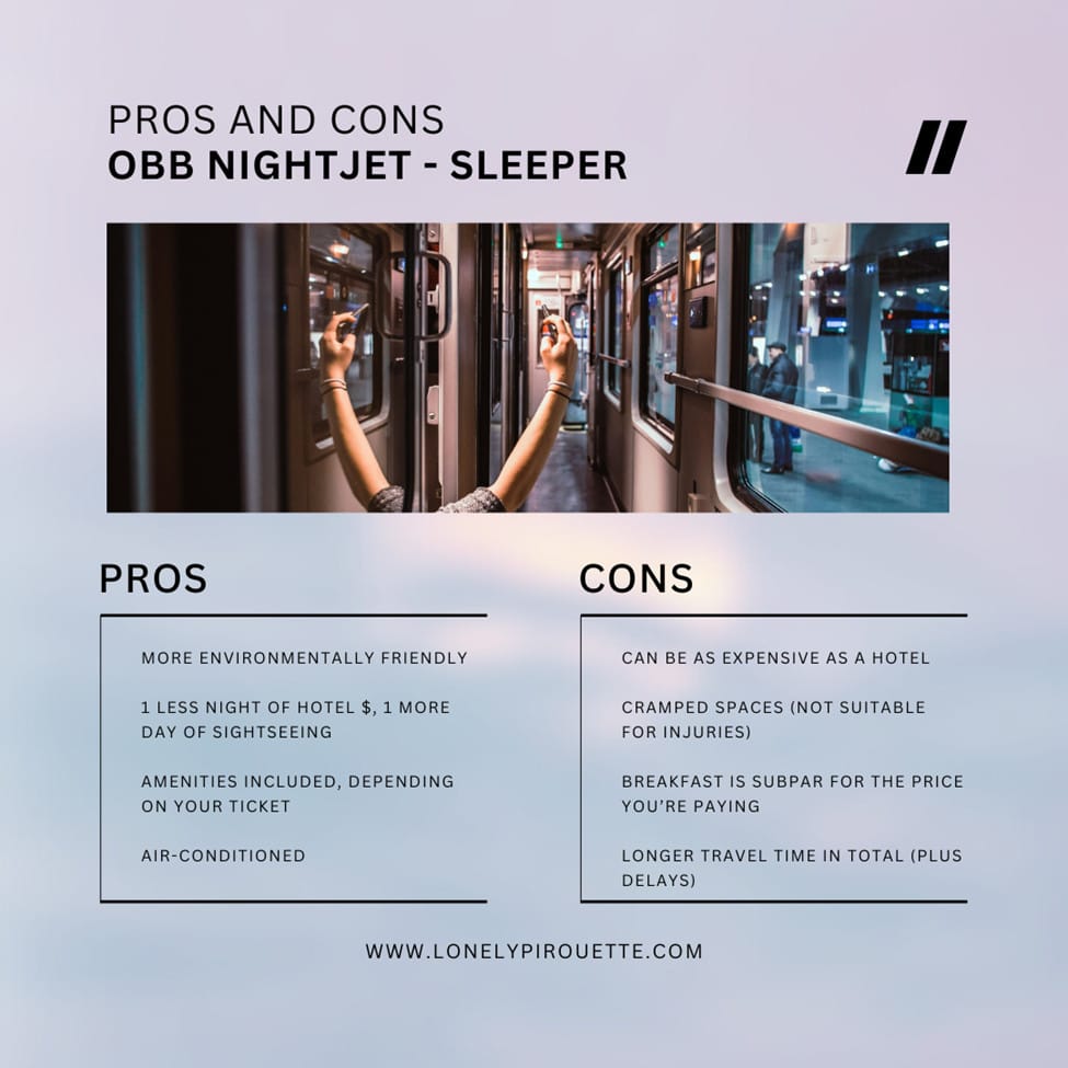 Below is a table summarizing the pros and cons of the OBB Nightjet from Munich to Amsterdam: