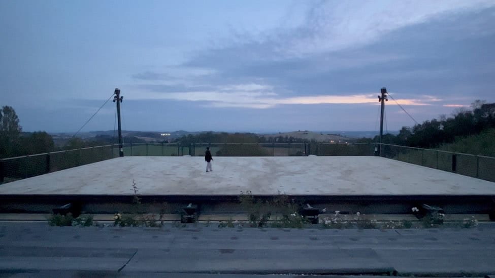 Next to the outdoor stage is another studio space. You can take the winding stairs nearby to reach the roof and gaze out at the setting sun. I went back another day by myself to fully immerse, and I was lucky to catch the fading twilight sky while there.