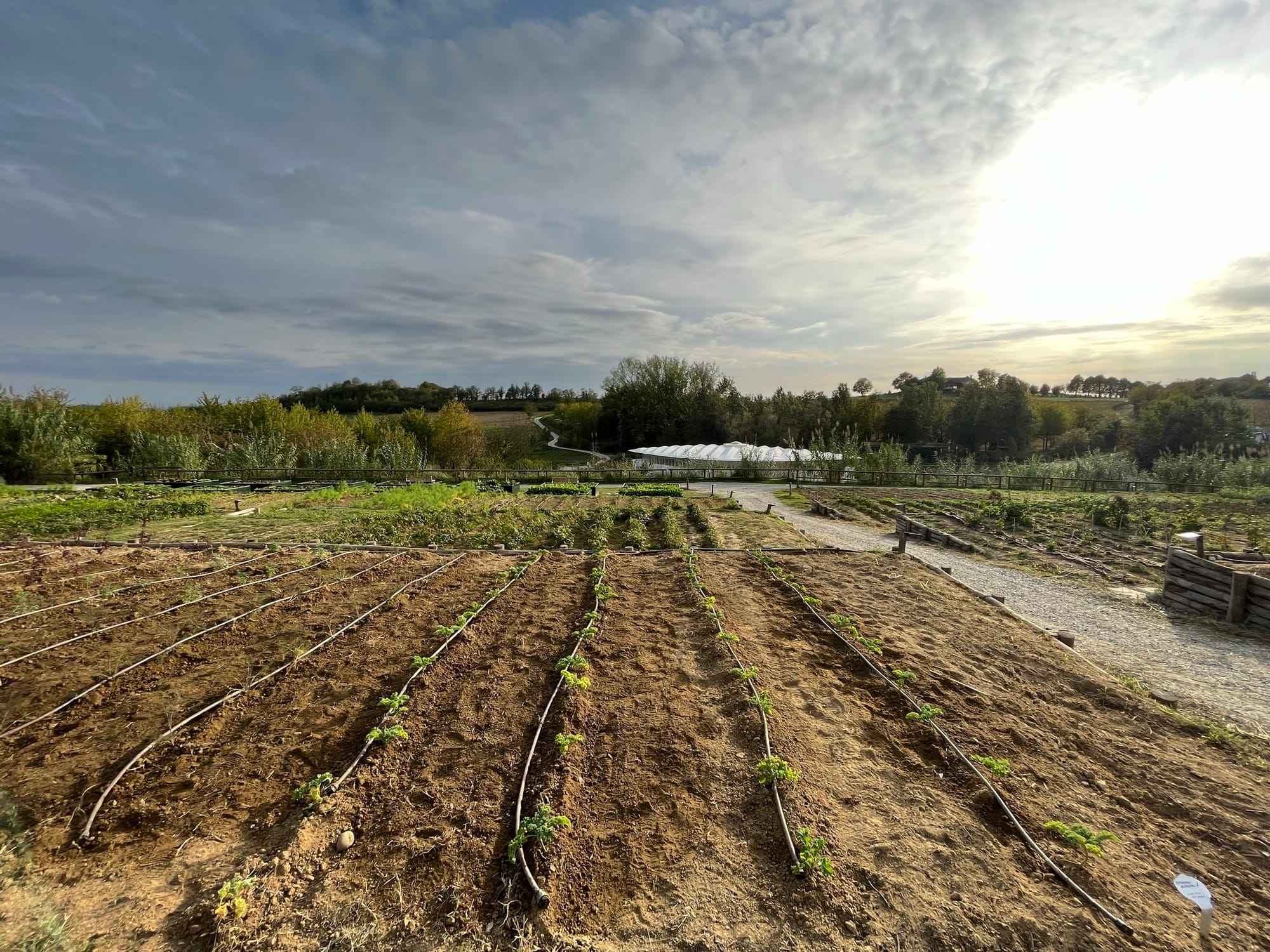 The main gardens are terraced outside the restaurant, open to the elements. There’s a covered greenhouse on the edge of campus growing more varieties.