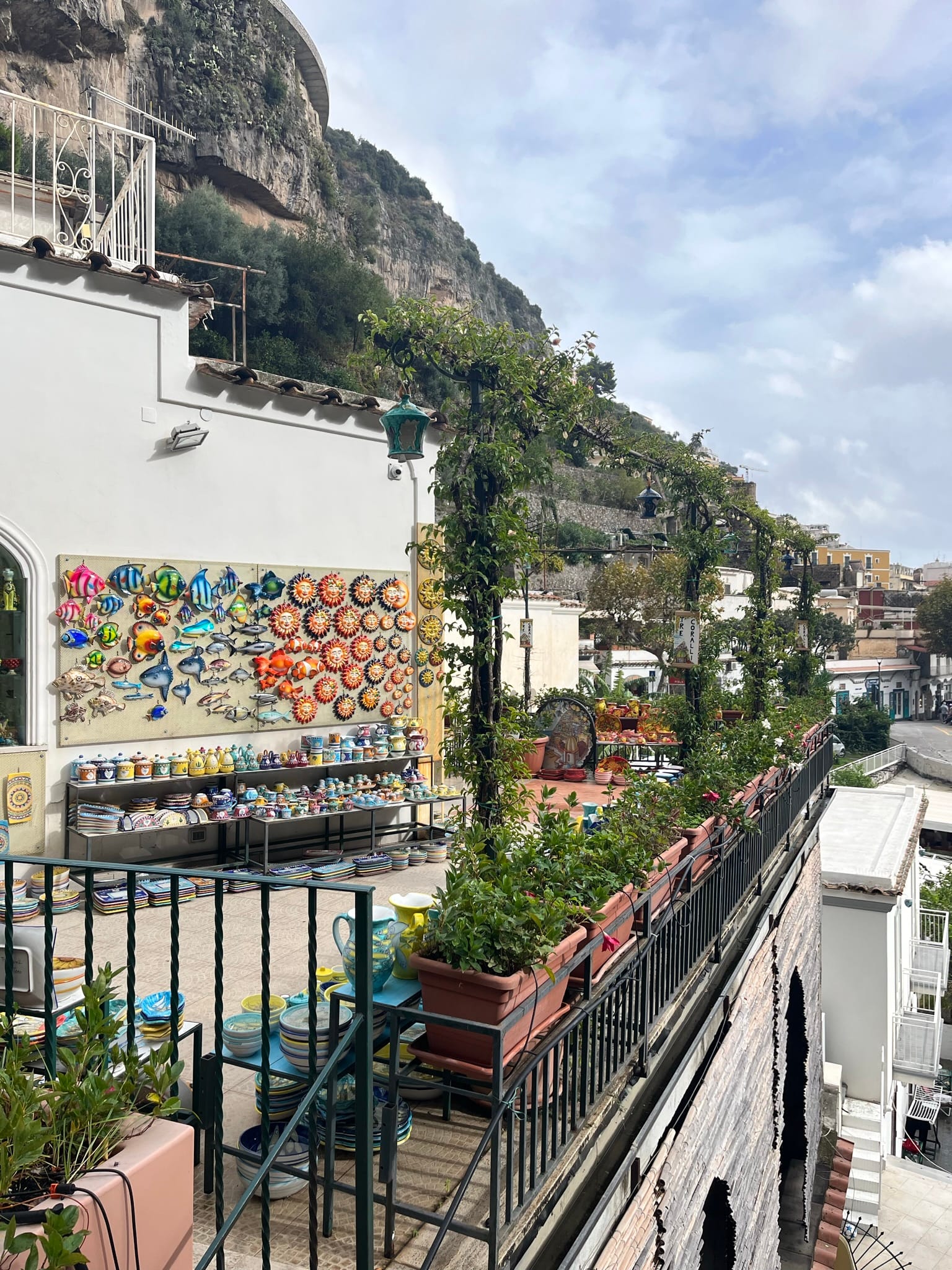 I did find one impressive clothing store: Antica Sartoria by Giacomo Cinque, tucked away on a less populated street on Via del Saracino. I was immediately attracted to a denim jacket with handsewn seashells embroidered all over it and lace flower details. I expected this to cost at least 150 EUR, but it was only around 90! The designs of the dresses and accessories are so much more unique than the lemons and frills of the rest of the stores. All their merchandise is significantly cheaper. Although, Antica Sartoria itself is not unique to Positano; it has branches all over Italy. Maybe that’s why it doesn’t conform.