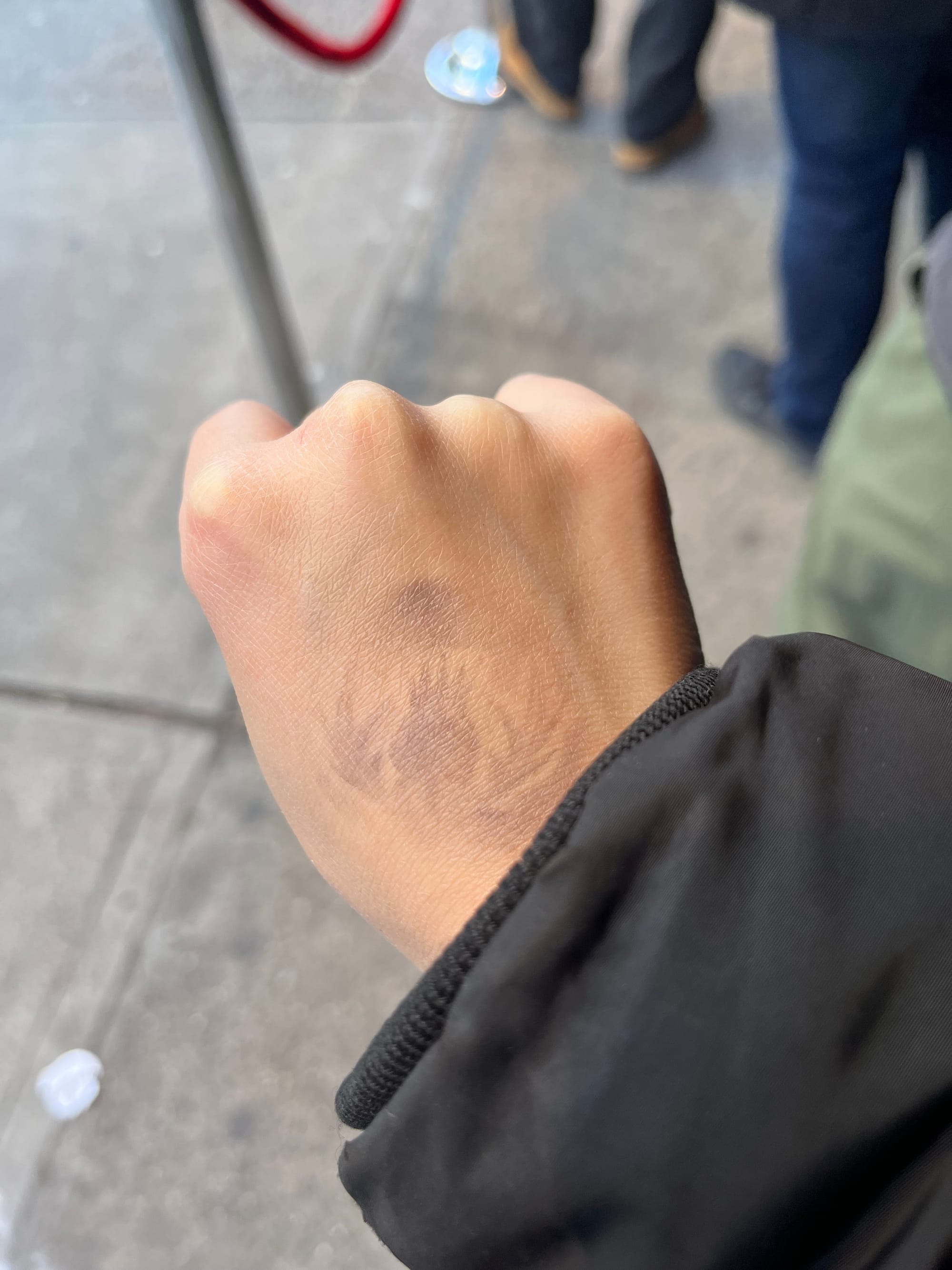 Then he crushed the egg in my palm! – I jolted in surprise, but he kept a firm grip – and brushed its remains down my arm to my elbow.