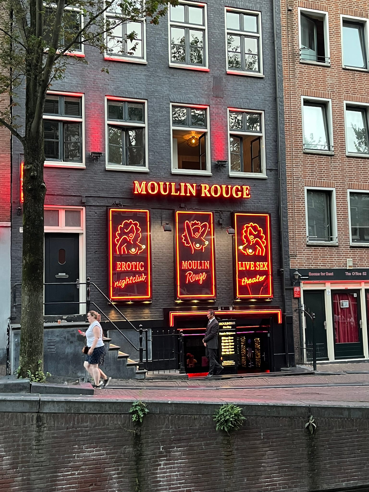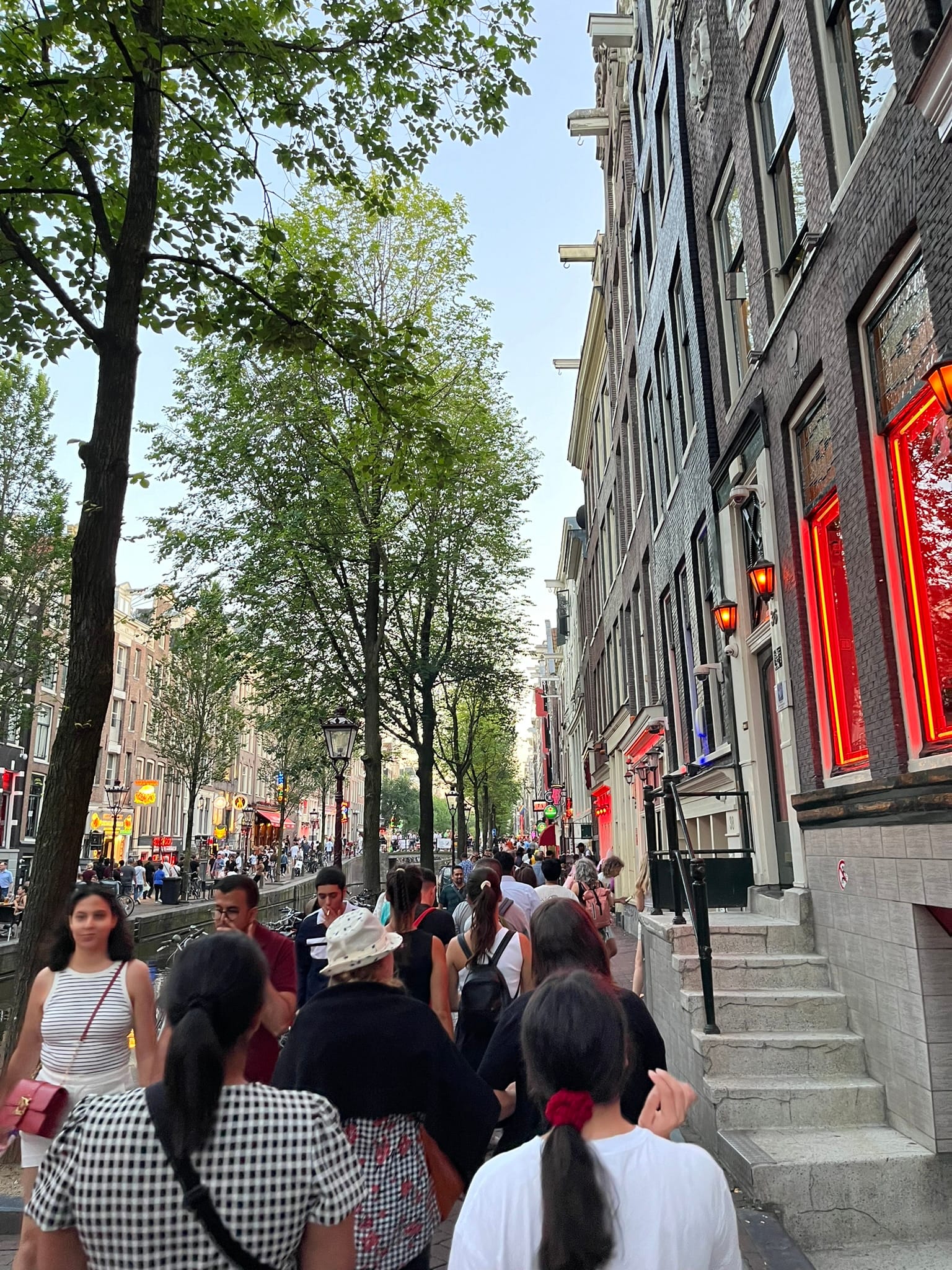 The women in the windows (i.e. full-length glass doors) are clad in bodysuits and heels, waving to the crowds passing by. Well, some of them are. It seemed to me that these women were such veterans in their field that, at this point, they didn’t really care anymore. One of them was just playing on her phone while lounged on a chair. I took care not to stare too much.