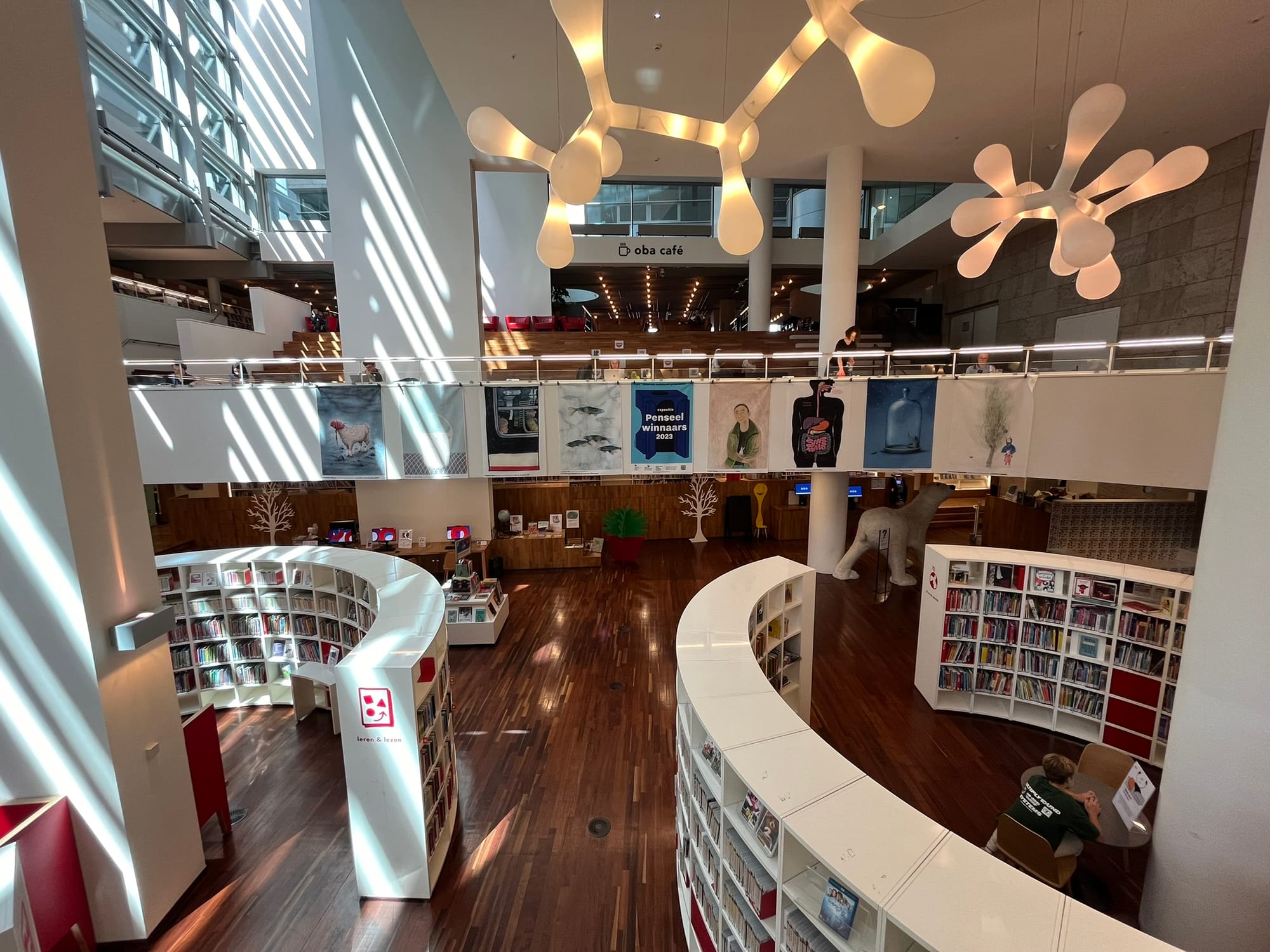 The OBA library is easily the coolest library I’ve seen so far. It’s huge, modern, and harbours an impressive array of workstations, media studios, theatres, an entire kids’ floor, a café (where I found free discount minicards like in hostels!), and a whole restaurant/cafeteria top floor, with a terrace that opens up onto an amazing view of the city.