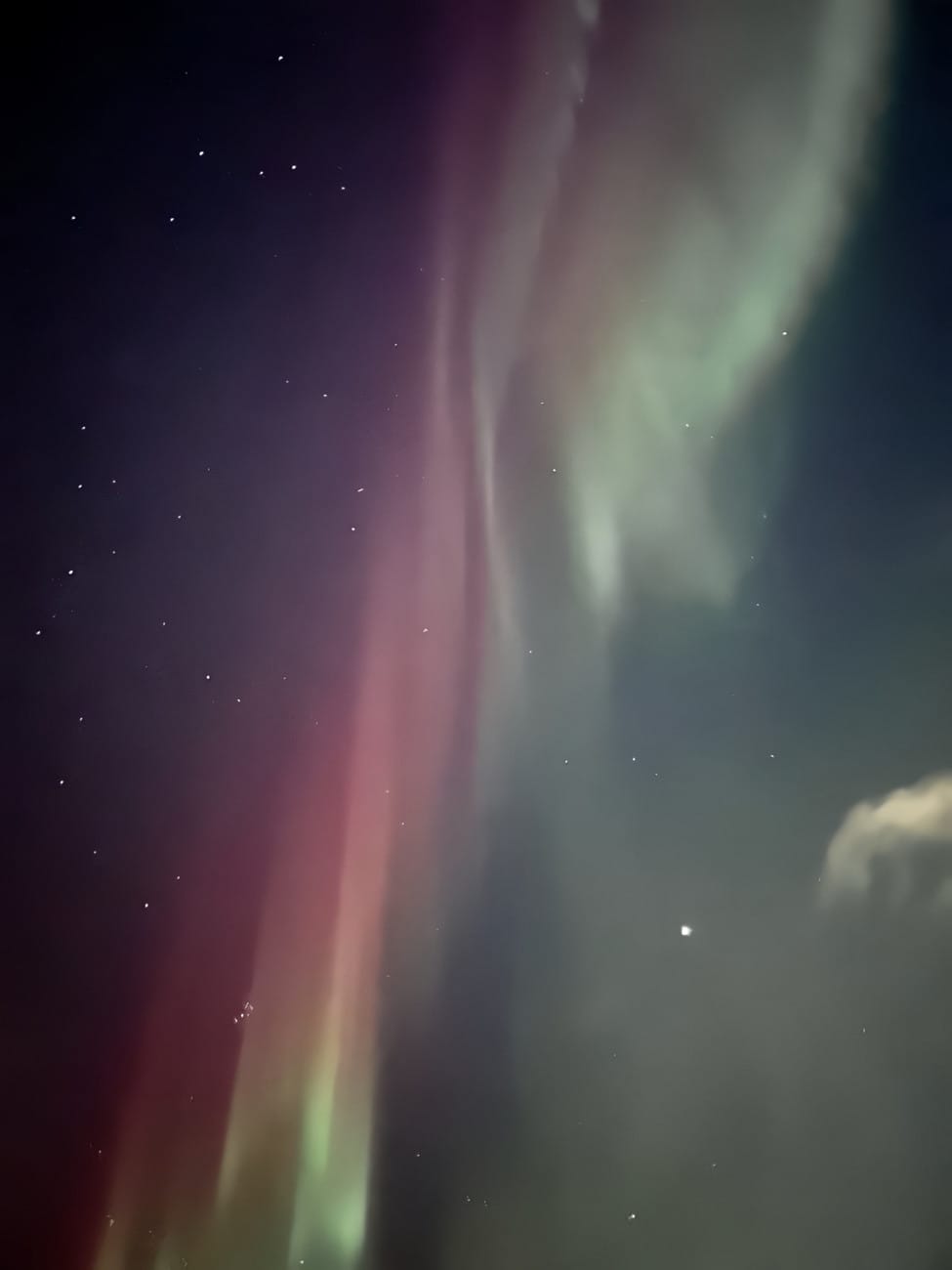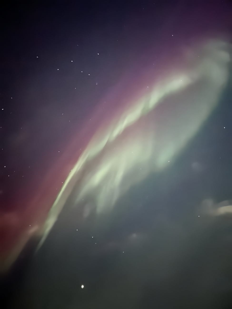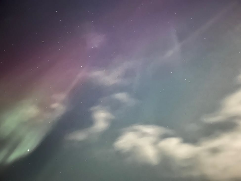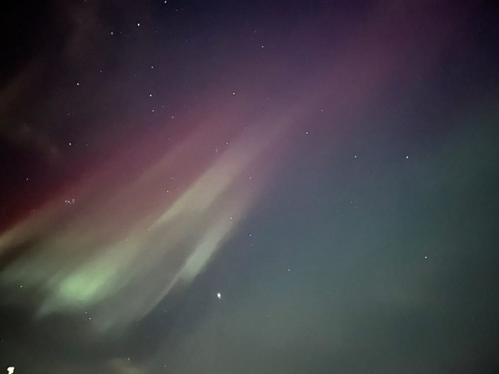 The below image is technically also of the northern lights, though poor zoom quality on my phone and a narrow frame of view without capturing obstructions made for a rather limited range.