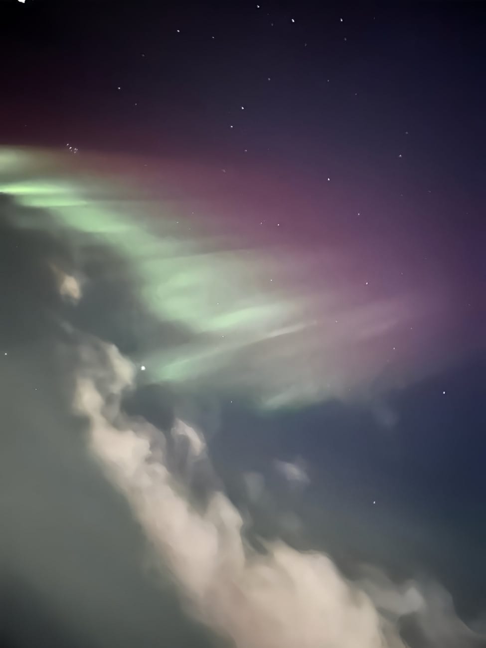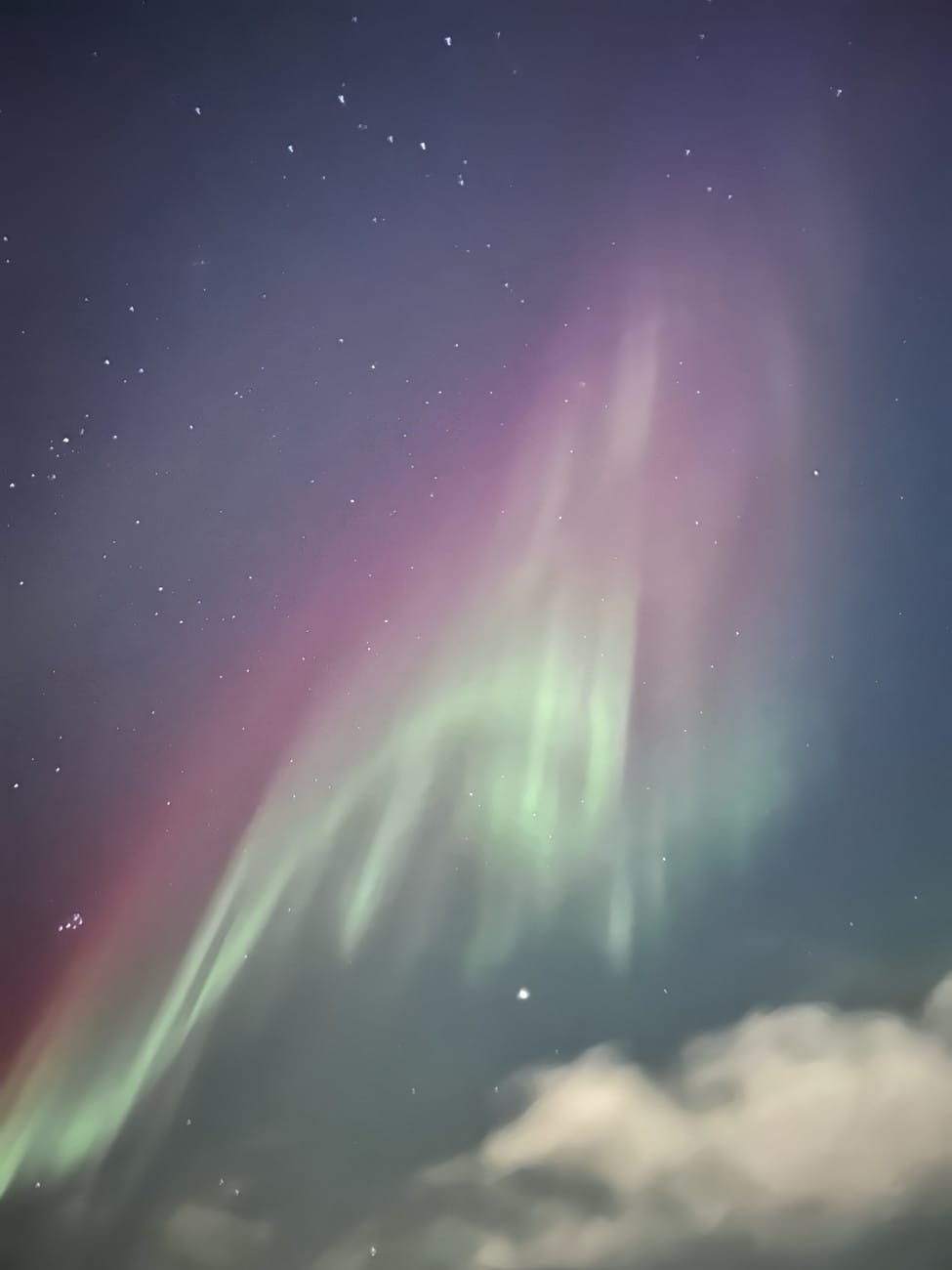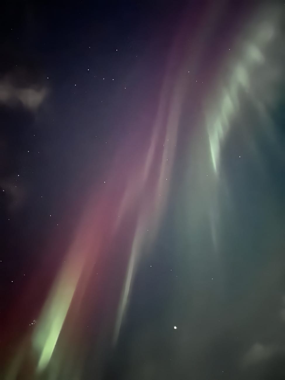 The below image is technically also of the northern lights, though poor zoom quality on my phone and a narrow frame of view without capturing obstructions made for a rather limited range.