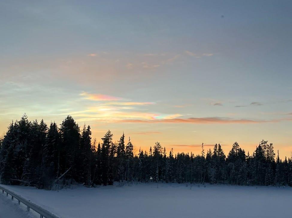Suspended in the air, irisation is when sunlight is diffracted in clouds that have ice particles from the cold. It’s like an angel took a marker to the sky.