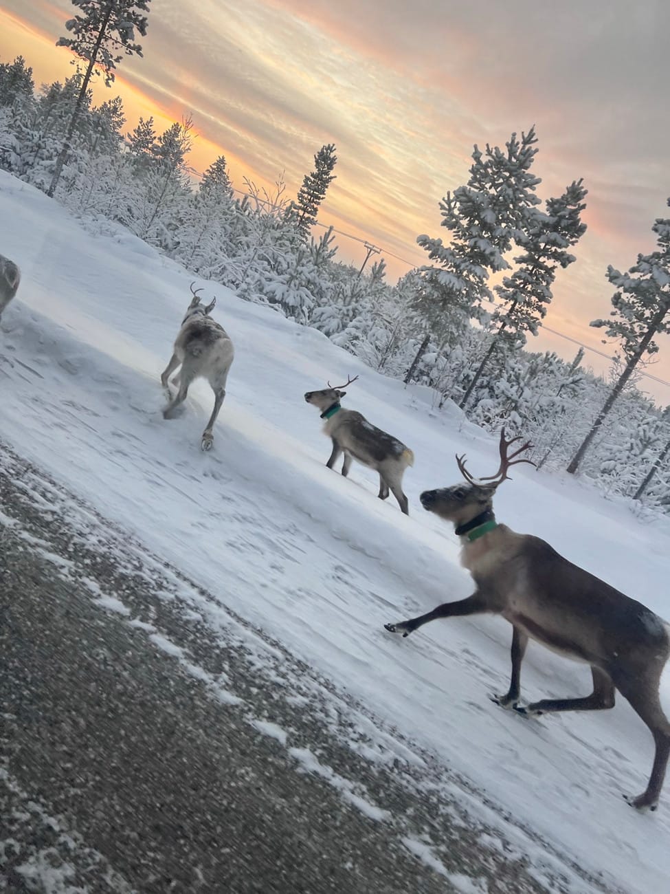 If you’re in a remote location, you’ll encounter some wildlife. Reindeer might be napping by the side of the road (or the middle). If you take a shortcut through the forest, you might be jump-scared by some animals hopefully running in the opposite direction, like I was.