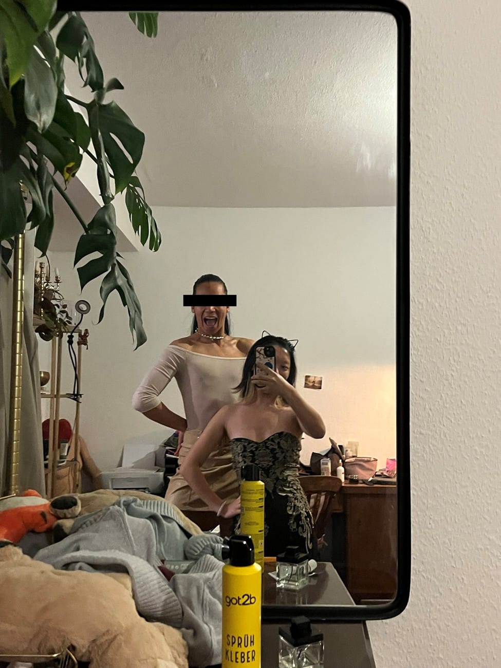 Another friend from Toronto and I decided to go. I met up with A. first at his apartment to borrow an outfit and settled on a black and gold strapless minidress. (Hot tip: never go clubbing in a strapless top or dress. If you’re going to be doing as much bopping as we did, that dress is not going to stay on.) A. went in drag, and we had a hilarious interlude on the way there as I tried to balance him while he stumbled over cobblestones in his stiletto heels!